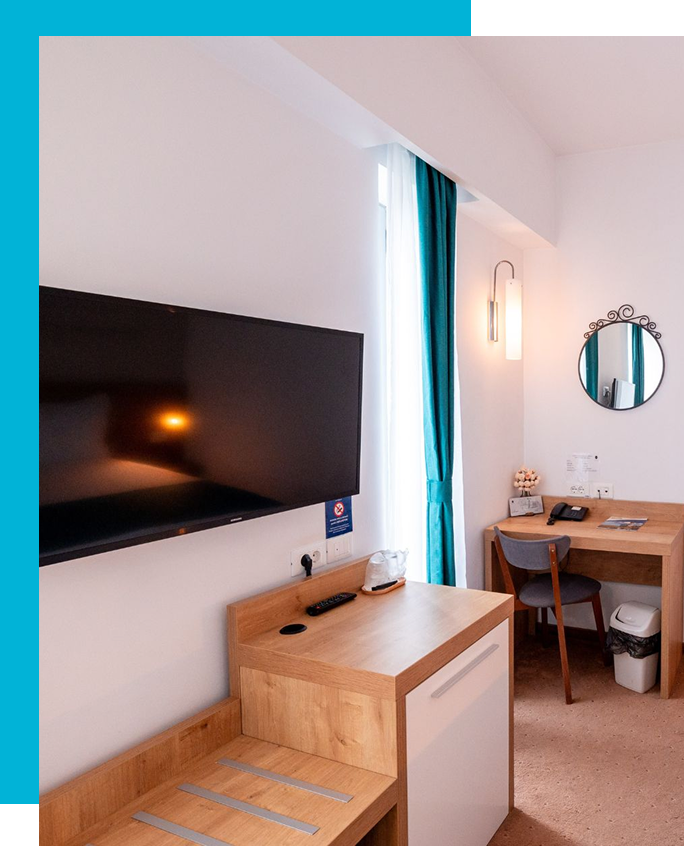 Avem și divertisment acoperit cu televiziune prin cablu și porturi de date pentru a rămâne conectat cu cei dragi  sau pentru a-ți gestiona afacerile. Plus, nu uita că avem și un uscător de păr la îndemână pentru a-ți menține look-ul impecabil.