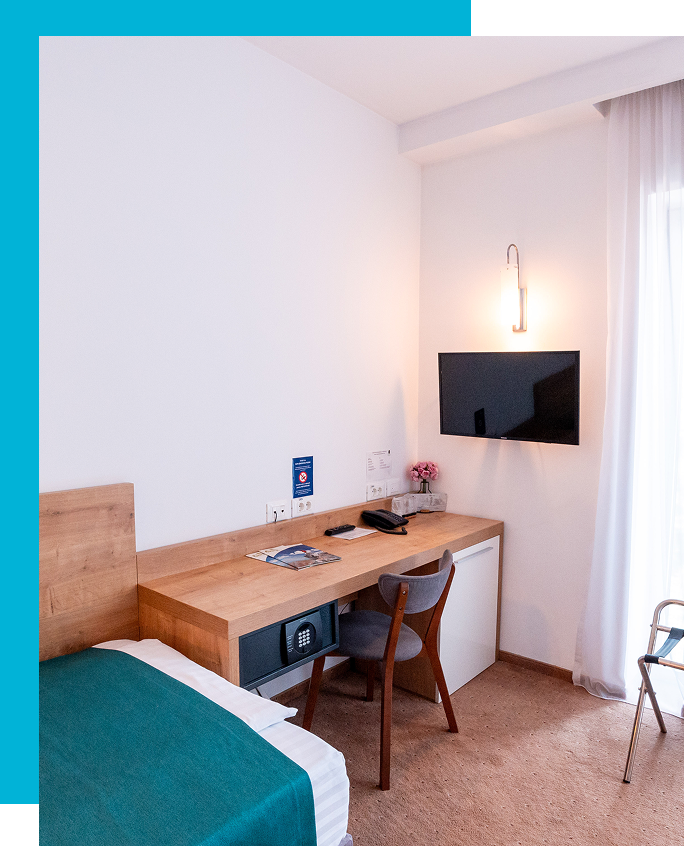 Descoperă echilibrul perfect între funcționalitate și relaxare în Single Room, ideală pentru călătorii solo. Bucură-te de un pat confortabil, un mini-bar bine aprovizionat și un TV LCD cu televiziune prin cablu, totul într-un spațiu optimizat pentru confortul tău.